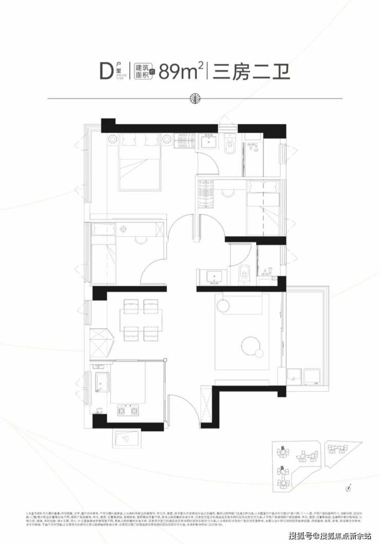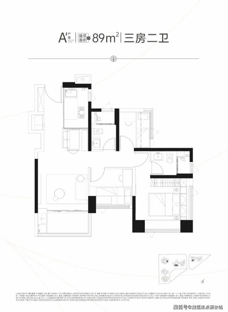 建面约89㎡的3房2厅2卫:超宽阳台紧连客厅,全屋明亮通透,空间运用更自由。