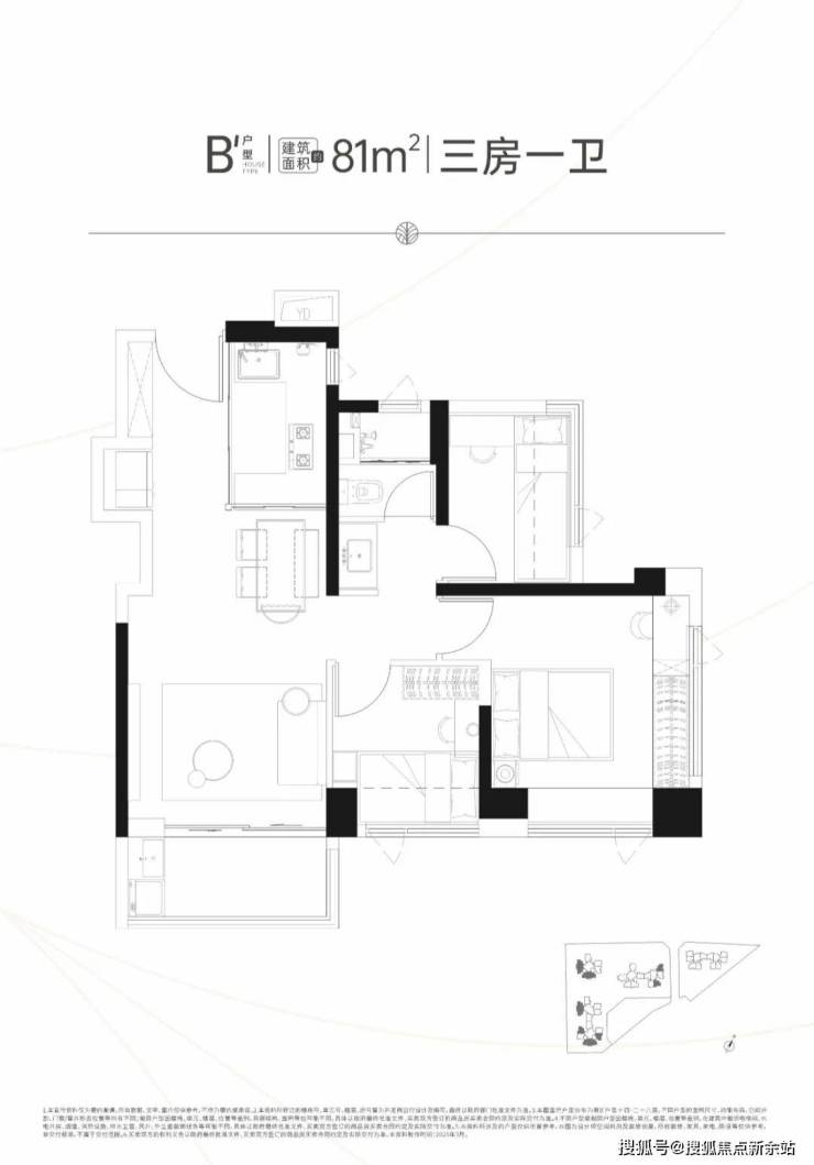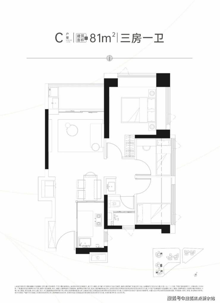 建面约81㎡的3房2厅1卫:科学布局,动静分区,功能区分布清晰各享其所