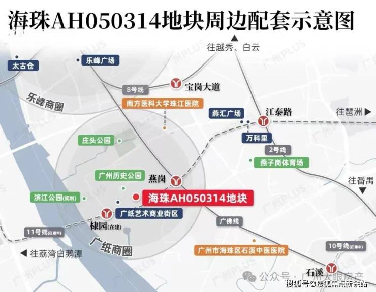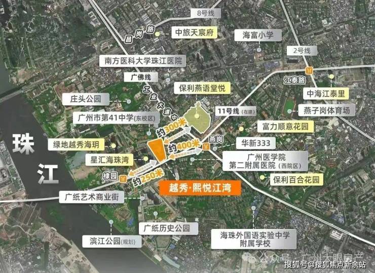 周边拥有双地铁:“换乘之王”广佛线燕岗站约400m(百度地图直线距离),广州首条黄金环城线11号线棣园站约250m(百度地图直线距离),直接打通琶洲、天河、海珠西和荔湾等区域,业主去哪都方便,7站南站、7站琶洲,轻松链接全城,虹吸广佛优质资源。