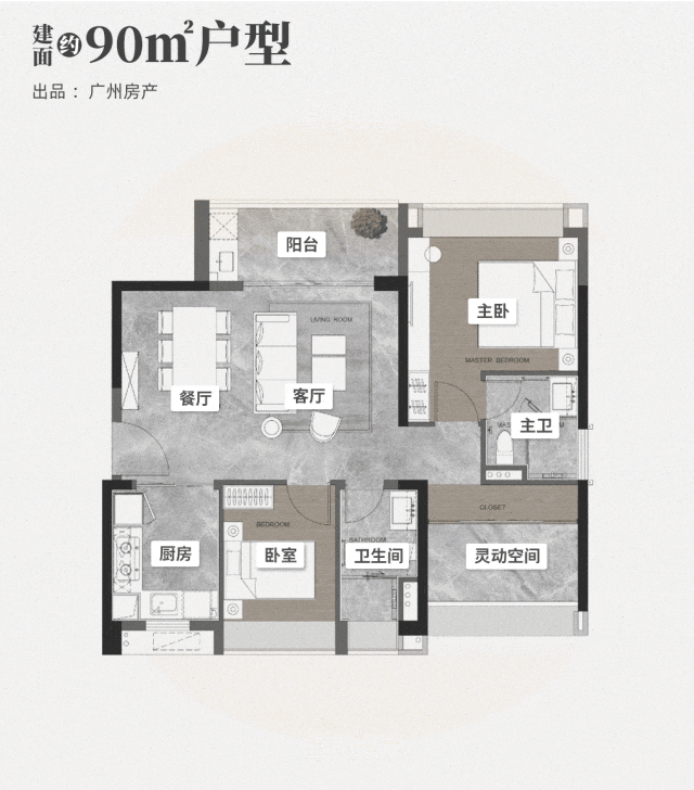 产品力稀缺突出,仅规划280套可售房源,无杂乱业态干扰,圈层纯粹。主力户型为90-132㎡三至四房,适配不同家庭成长需求,其中132㎡楼王单位可对望广州塔,采用LDKG一体化设计,配备6.4米阔景阳台,270°无遮挡环幕观江,直面广州CBD震撼视野;107㎡次楼王为类板式户型,四开间朝东南,可眺望广州塔与岭南广场景观,空间可开可合,灵活性极强。