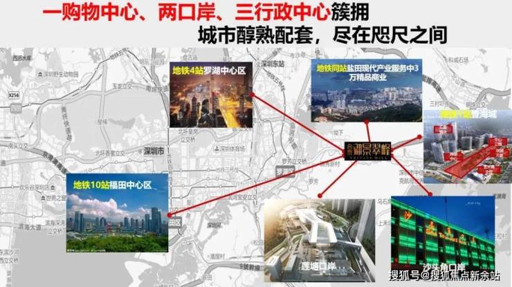 西行10分钟可到罗湖中心区,20分钟到福田中心区,东行5分钟可达盐田中心区,20分钟可达大小梅沙;沙头角及莲塘双口岸便利通关,与香港无缝相连轻松通达购物天堂,城市繁华与最美自然生活只是一个转身的距离。