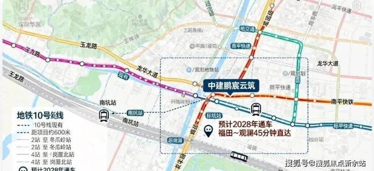交通配套项目距离地铁10号线南坑站约600米,2站达福田冬瓜岭,4站到岗厦北。规划中的22号线横岭站约700米,预计2028年通车后可实现福田⇌观澜45分钟直达。