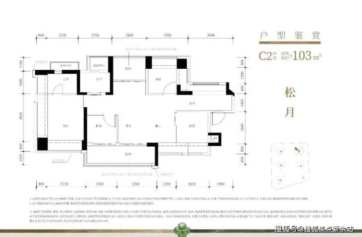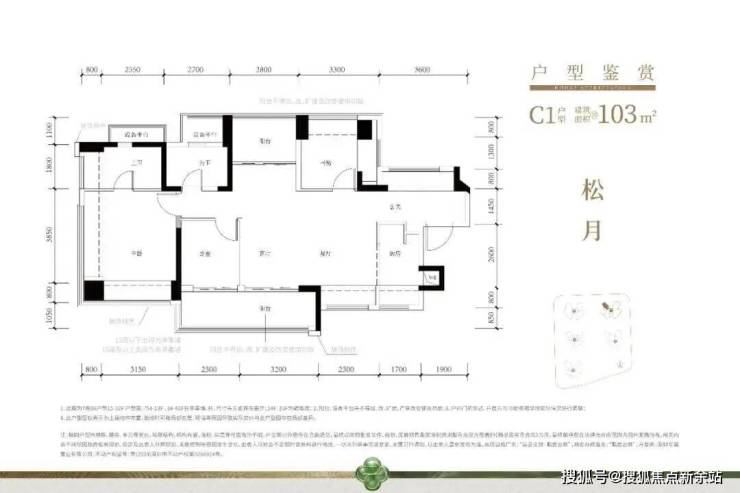 103㎡的4房2厅2卫,设计的是横厅南北通透格局,进门赠送约4㎡入户玄关,客餐厅5.7米开间