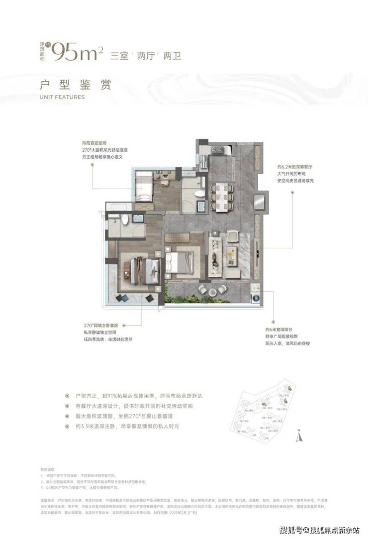 95㎡3 房 2 卫:南山入门级改善,总价 749 万起,西南向瞰山,功能性拉满;