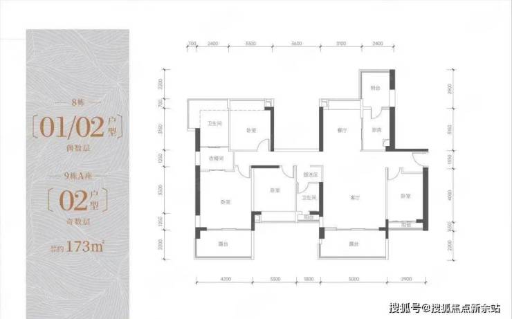 约173平4房2厅2卫(8栋01-02偶数层,9栋A-02奇数层)