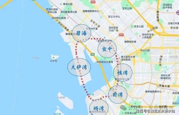 它的价值,放在深圳“一路向西”的黄金三角区里看才清楚——它恰好卡在宝中、前海和腾讯企鹅岛的正中间。