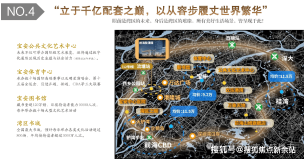 近距西乡会堂,紧邻宝安体育中心、毗邻欢乐港湾、宝安区公共艺术中心(在建中,含博物馆、美术馆、艺术馆)、湾区书城、宝安区图书馆等。