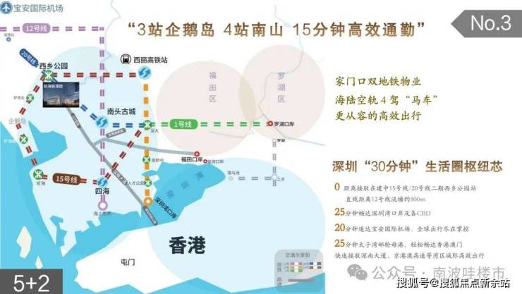 🚂直线距离12号线流塘站约500米,接驳地铁1号线、5号线,4站通达南山,站机场,30分钟直达太子湾邮轮母港乘船出发,航程约30分钟可达香港机场、约1小时可达澳门。