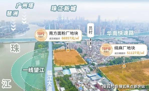 面粉厂地块位于临江大道旁,与珠城直线距离仅约600m;隔着净水厂,就是广州豪宅标杆汇悦台,二手成交单价一度超30万/平。