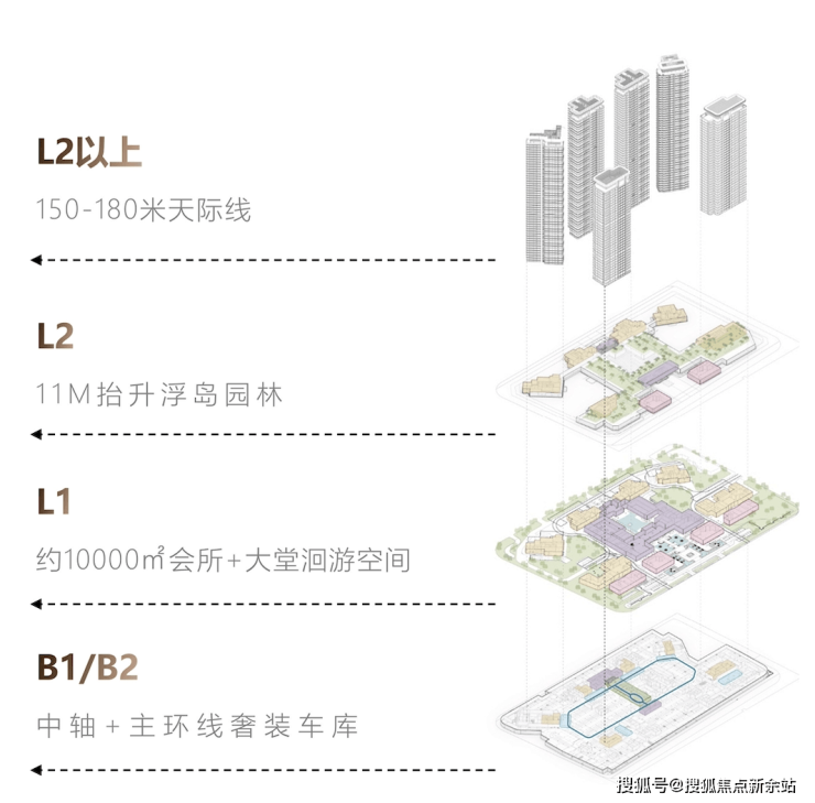 2.地块内部各个楼栋由架空连廊连接,可以直达商业及公建配套区域。