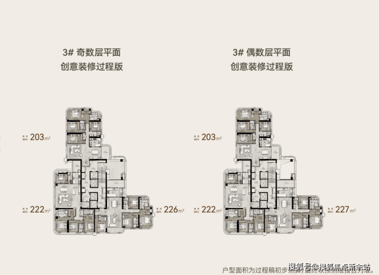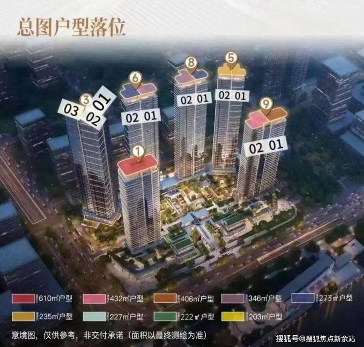 保利玥玺湾项目总共由6栋35-50层高的超高层住宅组成,1号楼是整个项目最大的611㎡一层一户楼王户型,3号楼户型涵盖203-222-227㎡三种四房户型,6号楼和8号楼的户型则是相同镜像的270㎡四房和347㎡五房产品,5号楼户型均为237㎡四房产品,9号楼则是前排大面积的407-432㎡楼王五房户型。