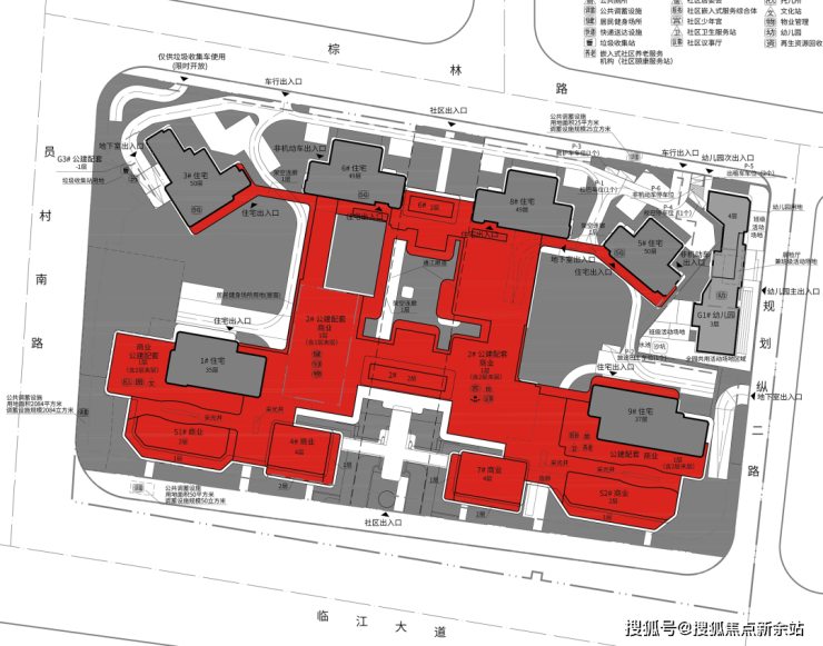 3.配建巨量底商(红色部分),未来极有可能打造成为会所,顶部承担屋顶花园功能。