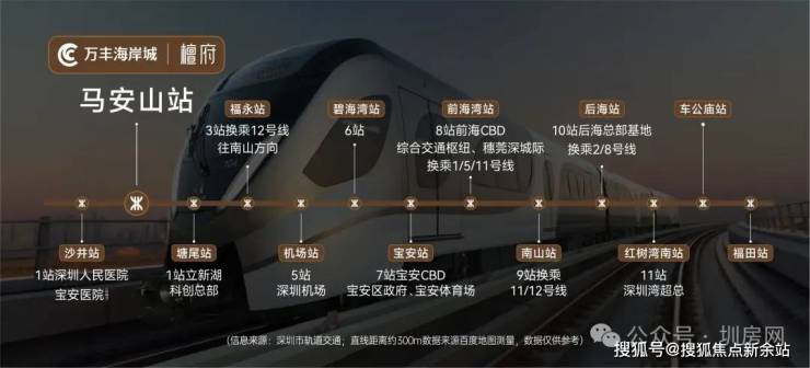 万丰海岸城处于深圳“西部城市中心”规划的核心区域,紧邻地铁11号线,距马安山站D出口仅约300米,5站达机场,7站至宝中,转1号线即达南山科技园、后海、福田中心和车公庙,链通全城。