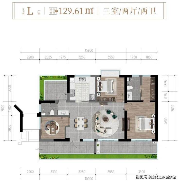 ✨5楼L户型约129㎡三房两厅两卫