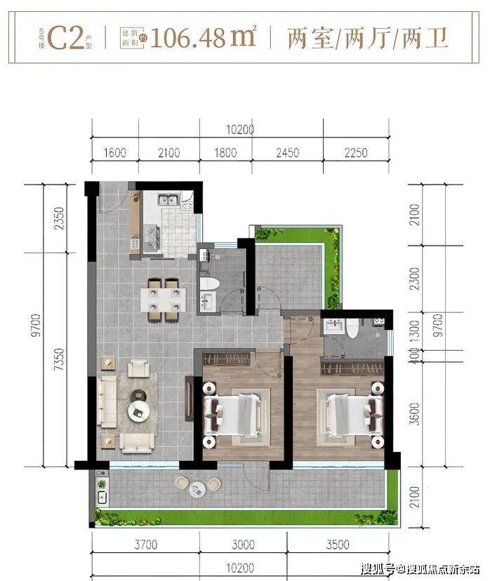 ✨5楼C2户型约106㎡两房两厅两卫