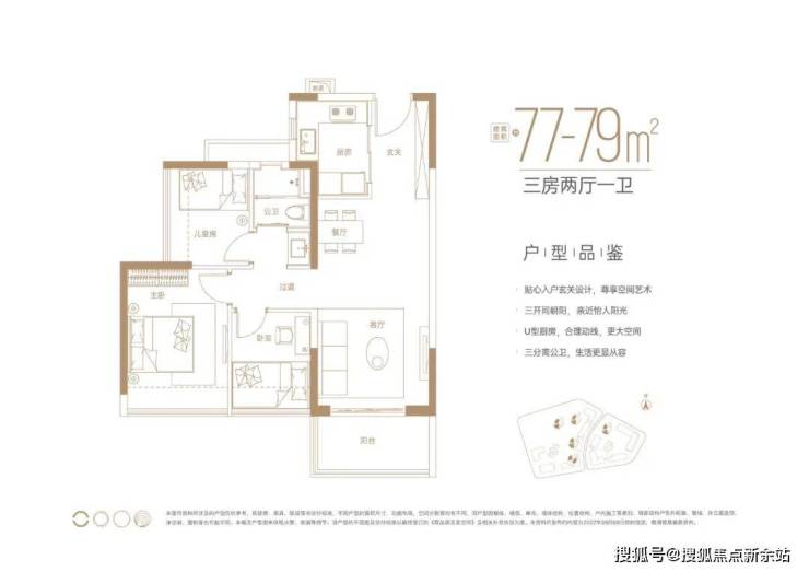 建面约77~79㎡三房一卫