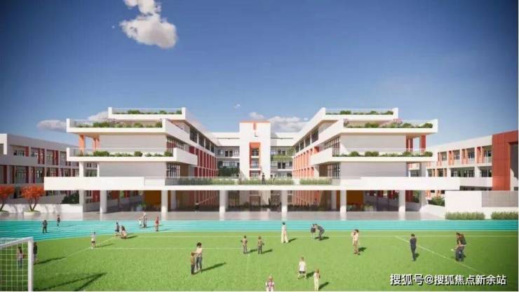 阳光大草坪+度假式多功能亲子泳池+元气运动场+模拟中考专属训练场