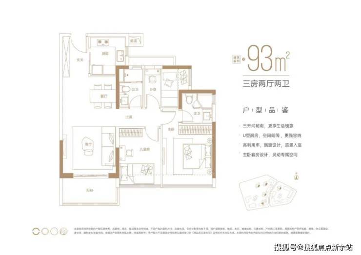 建面约93㎡三房两卫