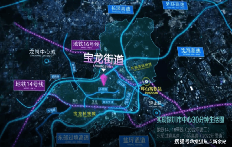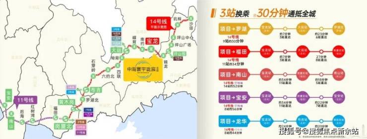 时速最高达120km/h的地铁14号快线(建设中),宝龙站三站大运,10站抵福田。家楼下的公交始末站,东部过境、坪盐通道、南坪快速等多条高速路通达全城程,坪山高铁站城市枢纽1小时大湾区都市圈。