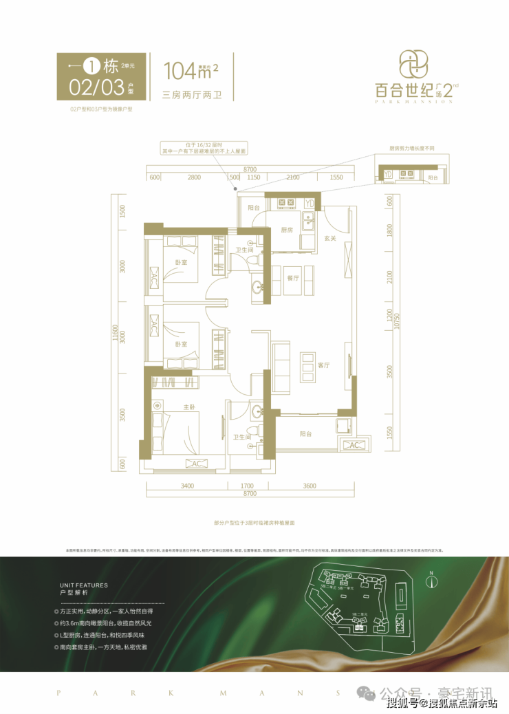 百合世纪广场二期(B-02地块),总占地面积约3.6万㎡,总建筑面积约27.03万㎡,计容建筑面积约19.38万㎡,共由3栋7个单元组成,总高是31-48层的住宅,其中1栋1单元住宅42F,1栋2单元住宅47F,2栋1单元住宅46F,2栋4/5单元住宅48F,3栋1/2单元住宅31F,另外2栋2单元公寓30F,2栋3单元商务办公楼22F,4栋是1所九班制幼儿园。