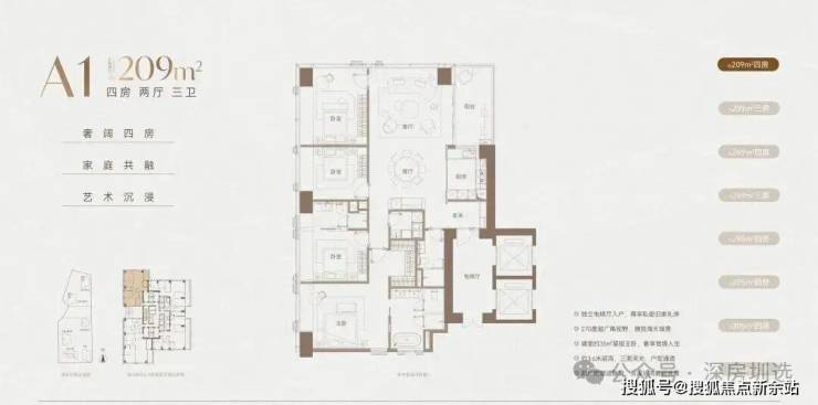 3️⃣户型面积209平以上都有保姆房+保姆梯。