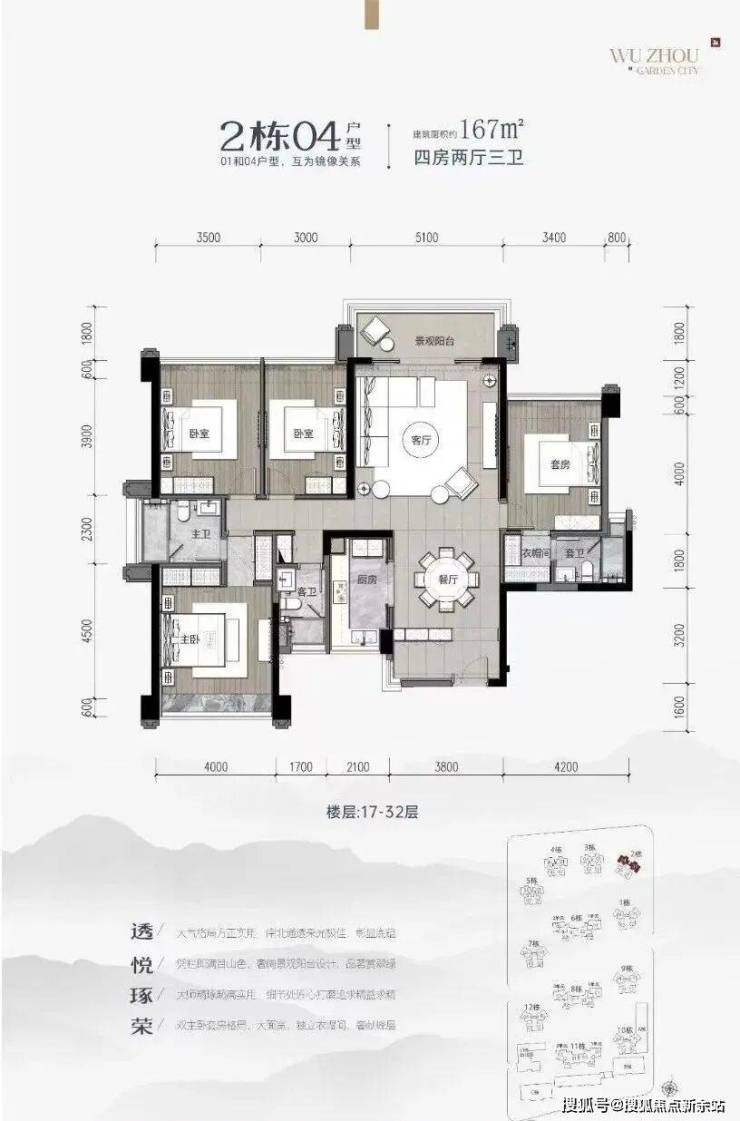 户型设计堪称空间艺术的典范:89㎡三房实现"小户大境"的魔法蜕变,189㎡五房演绎"世家风范"的格局气度。特别值得称道的是167㎡户型,通过双动线设计形成呼吸式格局,主卧270°转角飘窗将天空与园林景致纳入日常。卫浴空间采用嵌入式五金与防滑微晶石材质,配以智能化镜柜系统,在细节处彰显人文关怀。