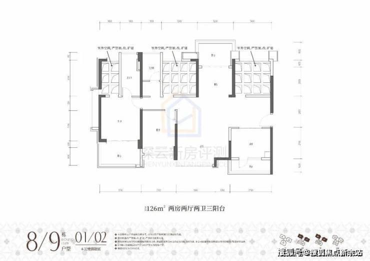 ①高阔奢享:建面约86-176㎡墅境宽宅,改善型三房四房,全南向户型天然舒适;两梯三户低梯户比,多阳台露台设计,悦享阔绰居住空间;方正户型结构搭载更多半开放设计,高阔空间实用率与灵活性大幅提升。