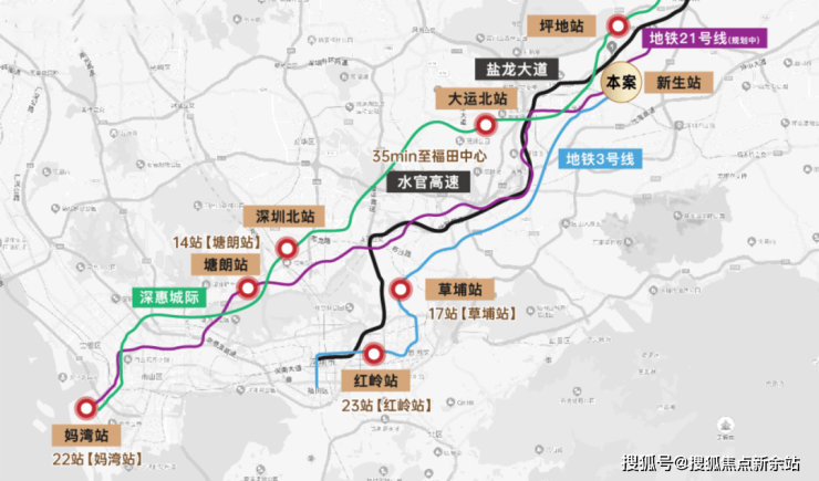 ≋1城际:21号线2站龙城站无缝换乘深惠城际(建设中),可1站大运中心、5站深圳北站、6站西丽枢纽、9站直抵前海,快速通达全市;