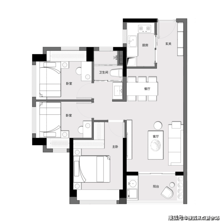 A户型|建面约70㎡两房两厅一卫