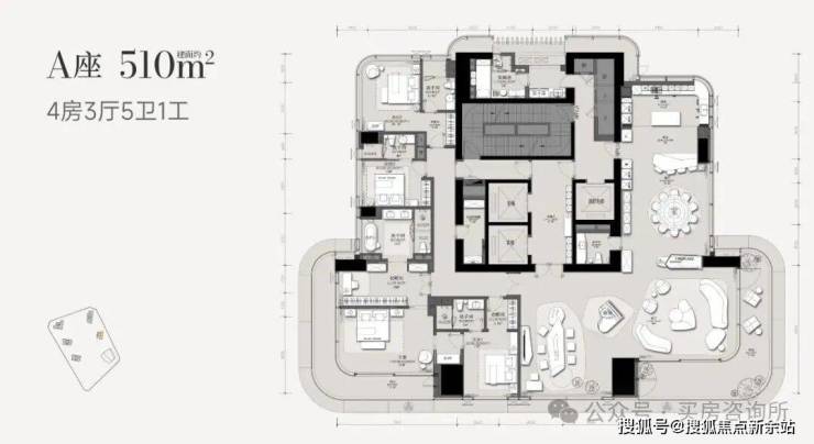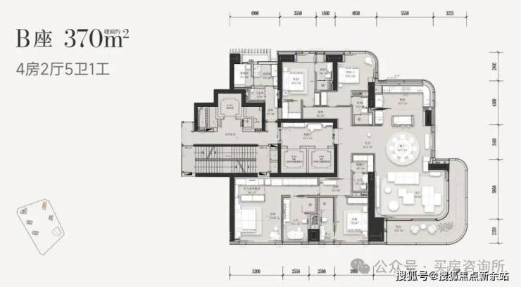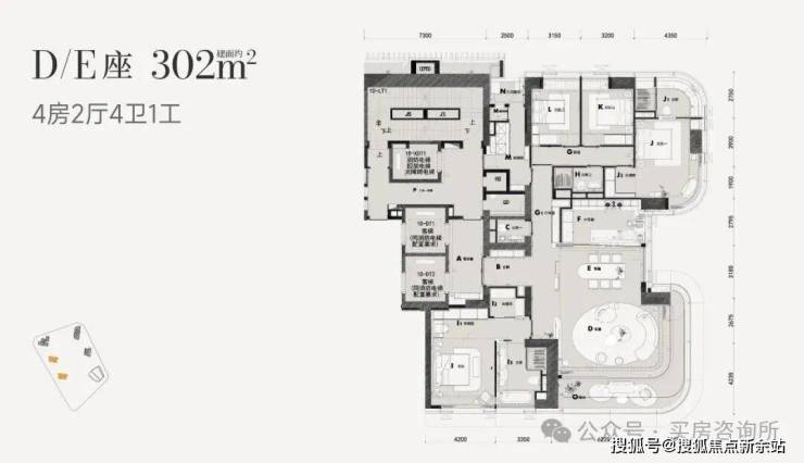 项目将会开放302㎡和370㎡两个户型,首推E栋的302㎡