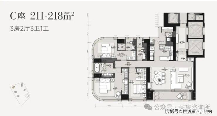 目前,信悦湾的户型面积主要是建面约211平的三房、建面约302平和370平的四房以及建面约510平的4+1房,所有户型都带有保姆间,建面约302平的都有L型阳台。不用说,这个建面约302平的户型会成为亿万富豪的抢夺户型,因为最稀缺产品才是最值得拥有的,对于亿万富豪来说,选户型重要的不是性价比,而是对资源的占有。