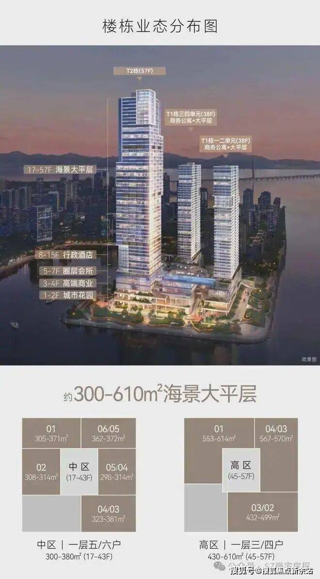 户型信息:主力户型为建面约230 - 700㎡的环海大平层,部分户型支持定制整层约2100㎡的户型,具体有建面232㎡的 1室1厅1卫、建面400㎡的 4室3厅5卫、建面500㎡的5室3 厅6卫以及建面700㎡的6室3厅7卫等多种户型。
