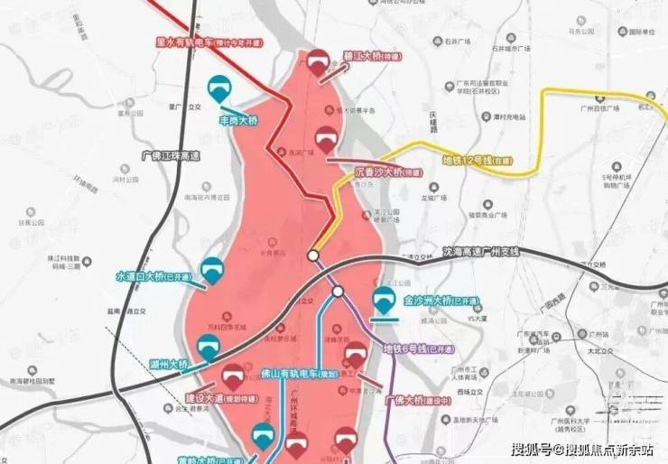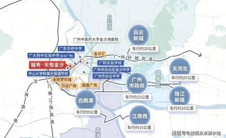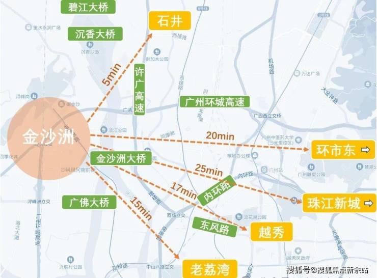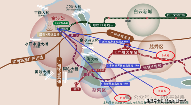 金沙洲的区位,其实都还行,横跨广州白云区和佛山南海区,临近荔湾,和广州的主城区相隔不远,尤其是广钢新城、白鹅潭、白云新城这些,对于不少人来看,这样的距离,是符合通勤距离的。
