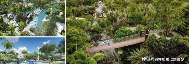 一二期交汇处,引水系为景观轴打造山谷花园,10米高差瀑布,吊桥、栈道、溪水等,营造和谐自然的活力休闲区。