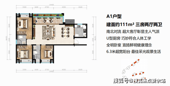 1、A1户型:111㎡三房两厅两卫