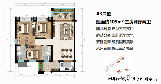 3、A3户型:105㎡三房两厅两卫