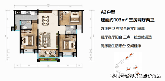 2、A2户型:103㎡三房两厅两卫