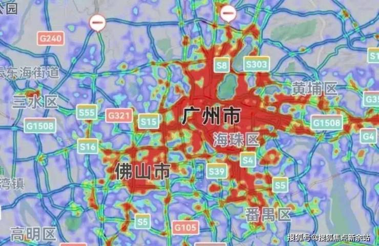 从卫星热力图来看,佛山的热度基本与广州中心区融为一体,是湾区最“热”的区域之一。
