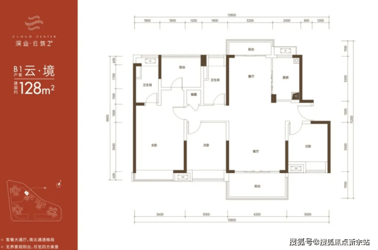128㎡的4房2厅2卫,折后总价405-443万/套,单价3.16-3.46万/㎡。