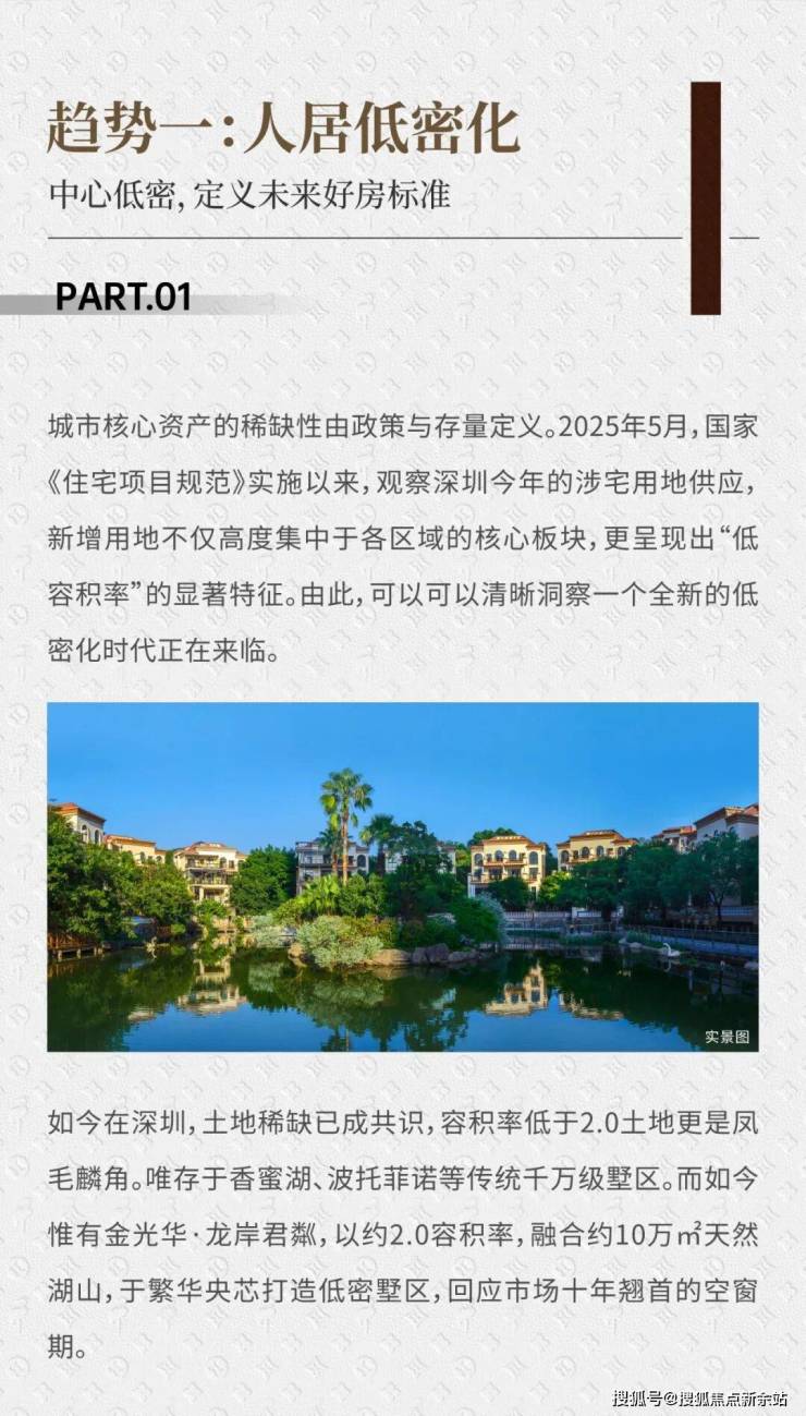 位于龙华民治的龙岸君粼,由金光华集团开发,是深圳中轴线上一个集湖景、低密度和高品质装修于一体的住宅项目。项目紧邻地铁10号线光雅园站,占地面积约10万平方米,建筑面积约28万平方米,容积率仅1.98,绿化率高达60%。