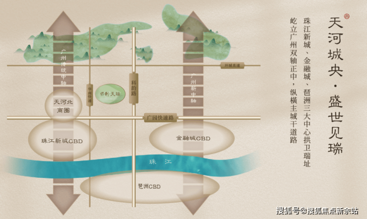 保利天瑞位于天河五山汇景新城板块内,珠江新城和琶洲金融城两中轴间的核心位置,楼盘身后就是汇景20年醇熟的圈层配套。开车20分钟通达去珠江新城和金融城