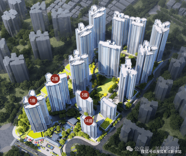 建筑布局:点状式排布保证每户景观与日照,全南向户型+开阔视野,俯瞰中心大园林;