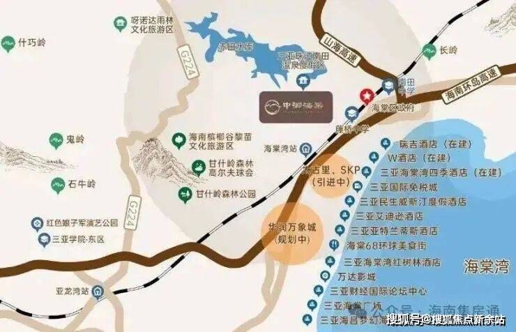 ①依山傍水,拥享1500余亩南田温泉;②出则繁华、入则鸣翠,缔造海棠湾山海度假标杆!