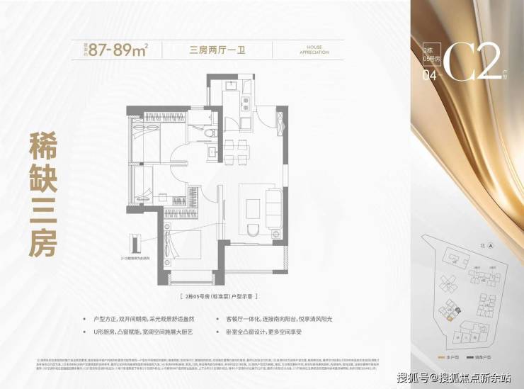 💎87-89㎡(三房一卫)稀缺精致3房户型,家庭生活一步到位!