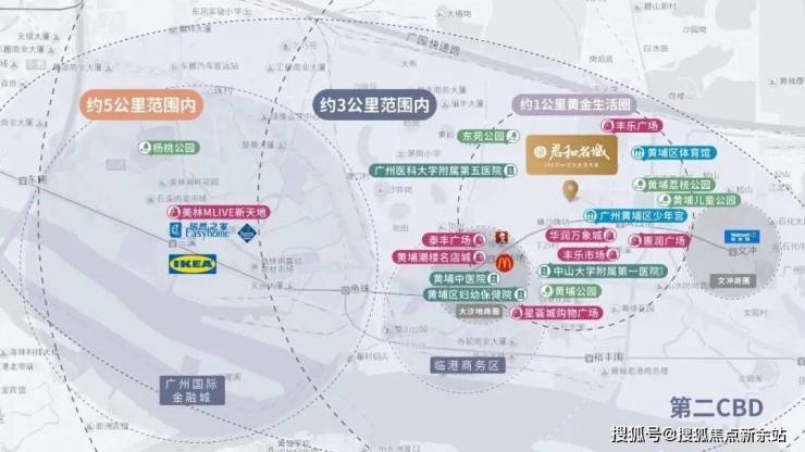 5公里范围内,则有美林新天地、优托邦、漫广场3大商业综合体。别忘了,还有广州头家华润万象城,预计今年年底动工。