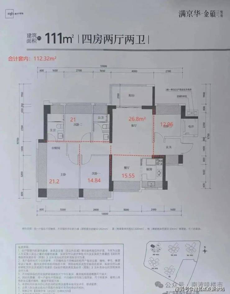 满京华金硕悦府,由满京华集团打造,总占地面积约2.61万㎡,总建筑面积约21.8万㎡,计容建筑面积约15.53万㎡,容积率5.95,绿化率30.01%,共由5栋32-48层高的住宅组成,其中1栋1/2单元住宅48F,2栋1单元住宅32F,2栋2单元住宅47F,3栋住宅48F,4栋是1所幼儿园,还配建有社区菜市场。