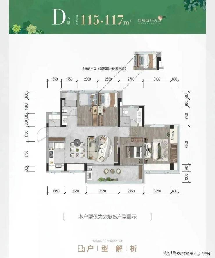 建面约115-117㎡四房:6米宽厅设计,配约12.8㎡巨幕阳台,主卧套房配备双飘窗。在计入赠送面积后,实际使用率可达约98.44%,完美适配多代家庭生活。