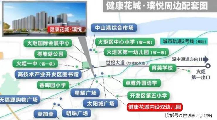 健康花城·璞悦位于中山城市人居未来的价值高地火炬新城。随着深中通道落定动工,热度持续高涨,GDP连续多年稳居中山第一,⽐肩深圳南⼭科技园、东莞松⼭湖。目前⽕炬区区内已⼊驻300多家知名企业、20多家世界500强企业,合力为周边产业、营商和居住提供符合未来需求的优质环境