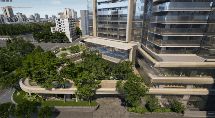更精妙的是,琶洲·樾|华樾,还在架空层打造了一个「船舷花园」。