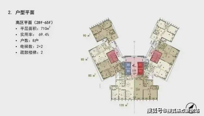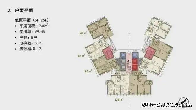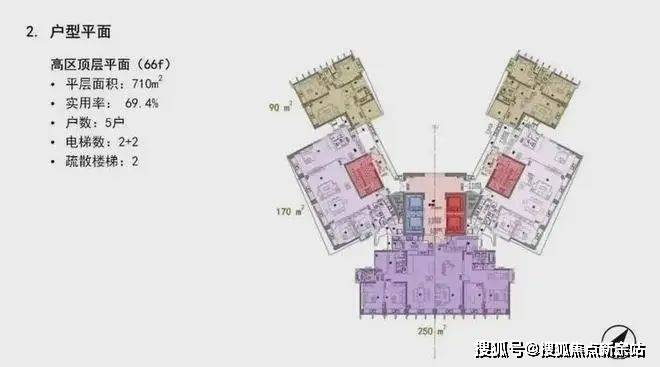 每一层采用分区设计,分为东翼、西翼和中区,设计非常私密尊贵;